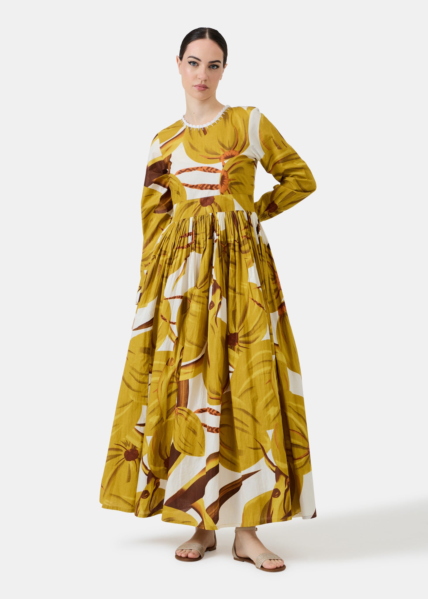 Maxi dress with a flowy skirt.